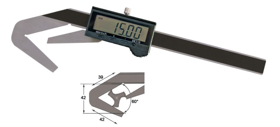 MIB Digitális hárompontos, rozsdamentes tolómérő, csavarrögzítéses, prizmaszög 60°, 4mm-es beállítóval, 4 – 40mm / 0.01mm, 01006018